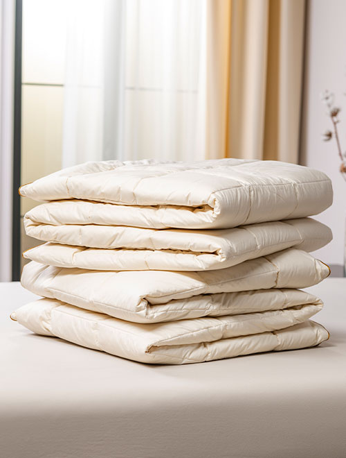 Внимателно подбрани естествени материали осигуряват натурална терморегулация и комфортна топлина, като обгръщат тялото с хармония и мекота, вдъхновени от самата природа. Памукът и вълната не са просто традиция – те са съвременният лукс.