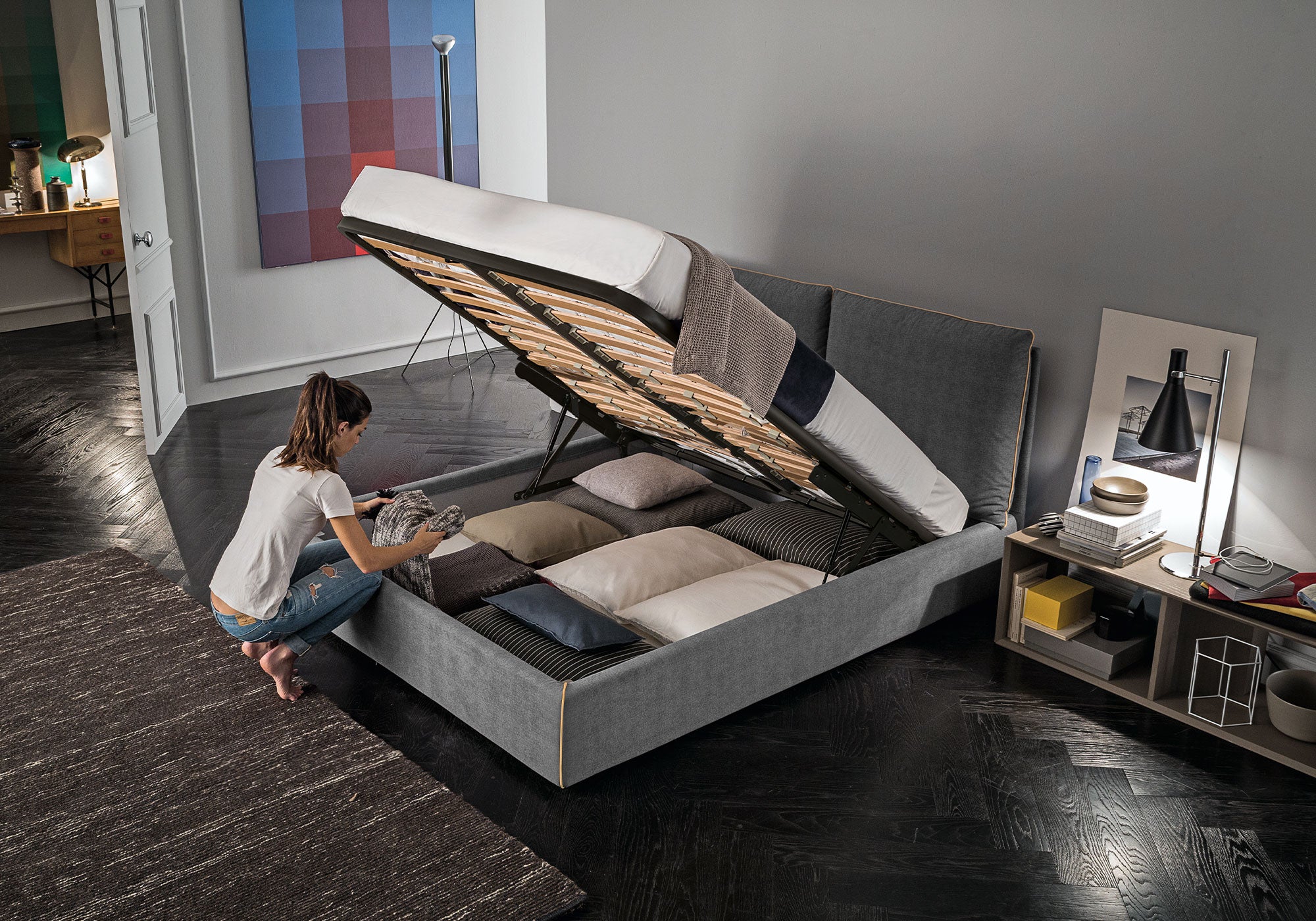 Felis ви дава свобода – изберете дамаска по свой вкус, възползвайте се от опцията за лесно повдигане на леглото за удобно почистване, добавете LED осветление ра или интегрирайте USB порт за повече практичност. Съчетавайки италианска елегантност и функционалност, Felis създава спалнята, която е изцяло във ваш стил.